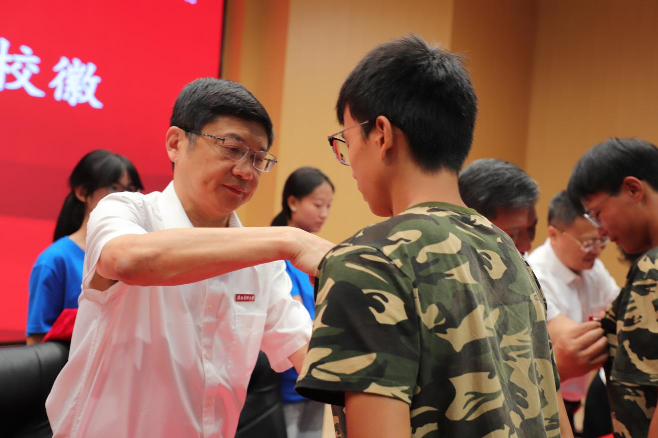 领导为新生代表佩戴校徽。