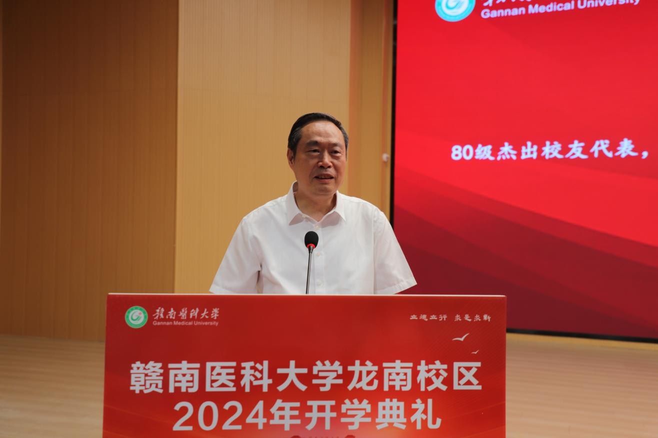 钟旭辉代表龙南市委、市政府以及龙南人民,向师生们表示热烈欢迎。他指出,赣南医科大学龙南校区的建成开学,标志着龙南拥有了第一所公办本科院校,是龙南人民期盼已久、为之振奋、倍感自豪的盛事喜事。希望同学们立凌云志、读万卷书,去浩瀚的书海中汲取知识的力量,在大学岁月里绽放青春的光芒,努力成为学有所长、业有所专、技有所精的新时代医学新人,期盼大家把龙南视作故乡、把赣医当作家园,根植这片热土、践行医者仁心,与龙南双向奔赴,共同为未来拼搏。