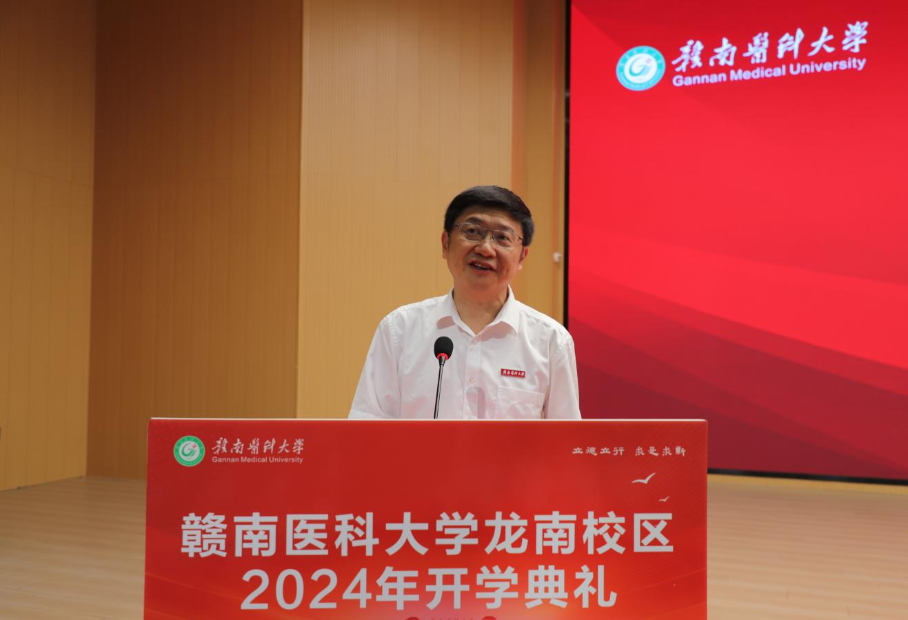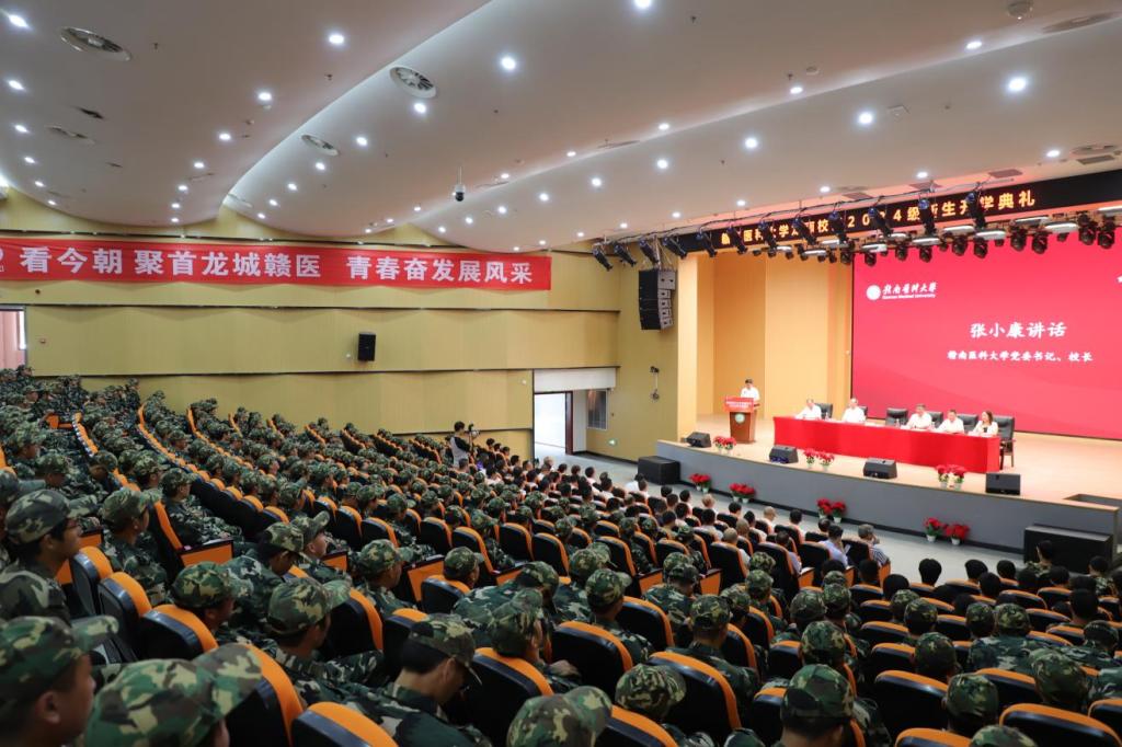 参加典礼的还有:学校各职能部门负责人、龙南市各相关单位代表、赣医大一附院龙南医院有关领导和代表、相关校友会特邀嘉宾以及2024级全体新生。