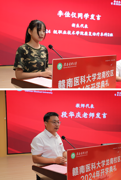 2024级康复治疗专业本科2班李佳仪,教师代表段华庆先后发言。