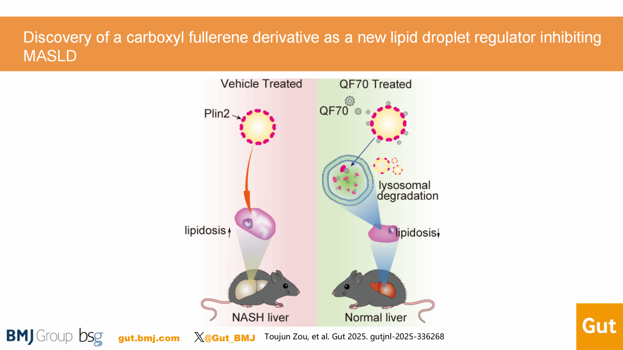 本研究首次证明,基于纳米材料的脂滴稳态靶向治疗策略可行,为开发治疗MASLD及相关代谢疾病的新型疗法奠定了基础。 据了解,《Gut》杂志创刊于1960年,由英国医学杂志出版集团(BMJ Publishing Group)发行,是欧洲胃肠病学联盟的官方期刊。