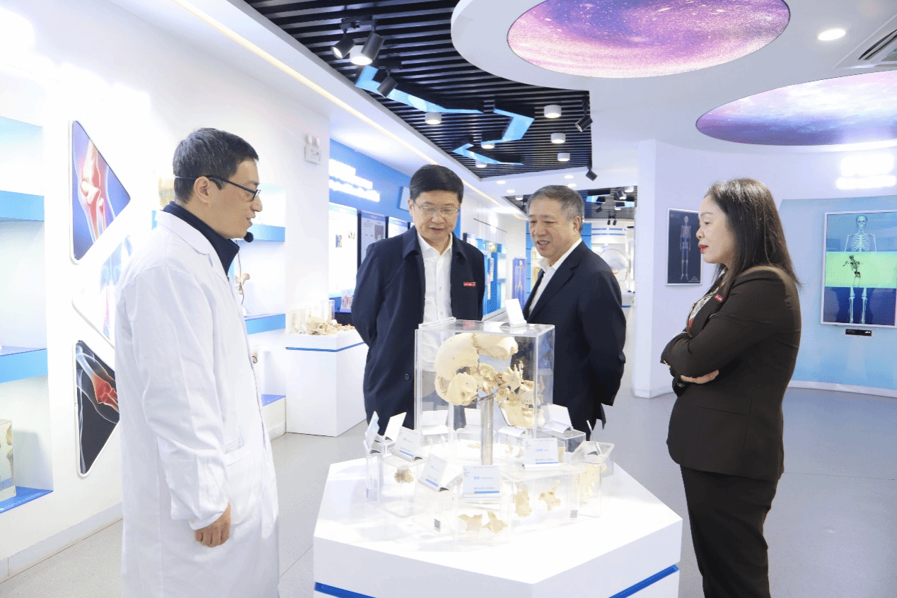 在人体生命科学馆,杨振斌参观了主模块展区和各个功能展区,详细了解展馆标本收藏、科普活动开展等情况,认为我校以人体生命科学馆为载体,面向师生及社会公众开展常态化、沉浸式科普教育的举措值得推广。