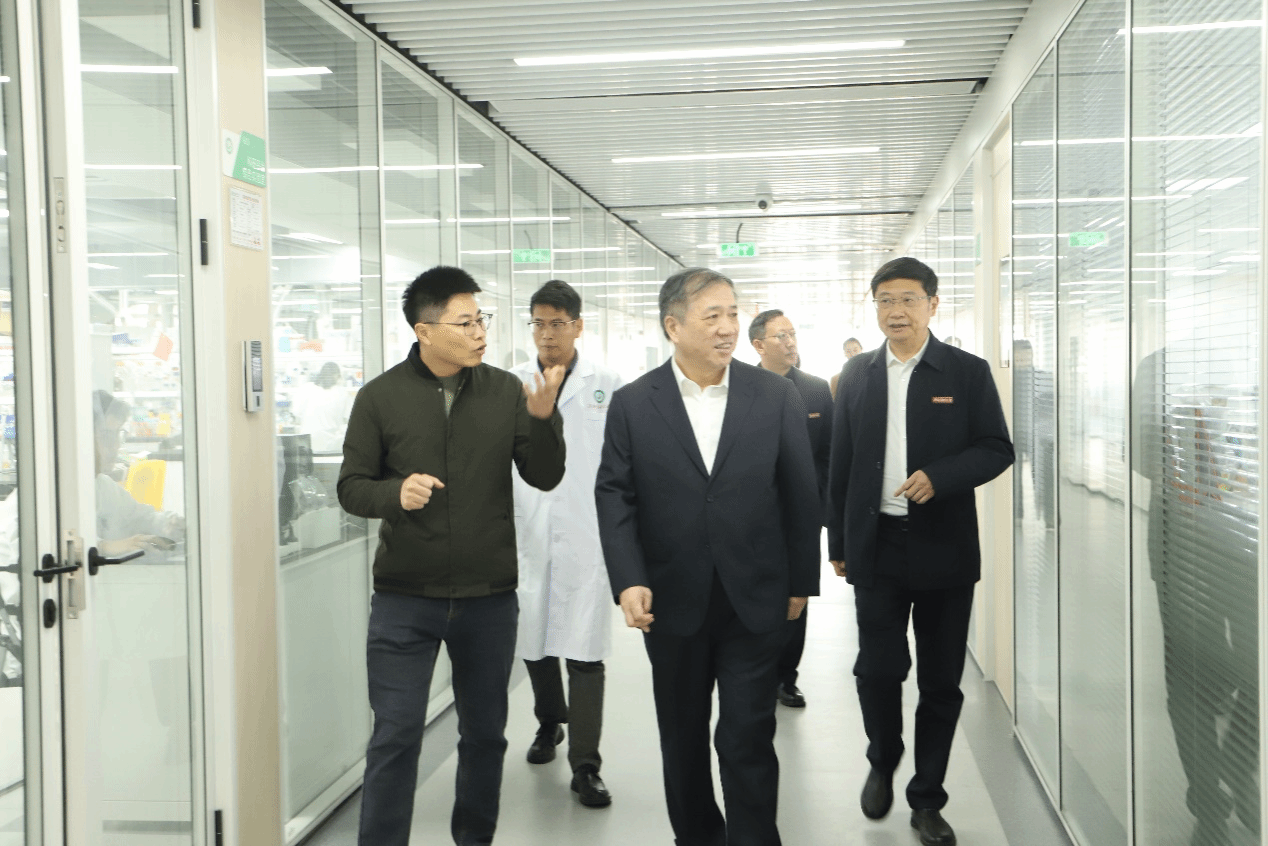 杨振斌一行还到创新与转化医学研究院实地考察了模式动物工程研究中心、展厅与成果转化间、创新药物研发中心等重要科研平台。