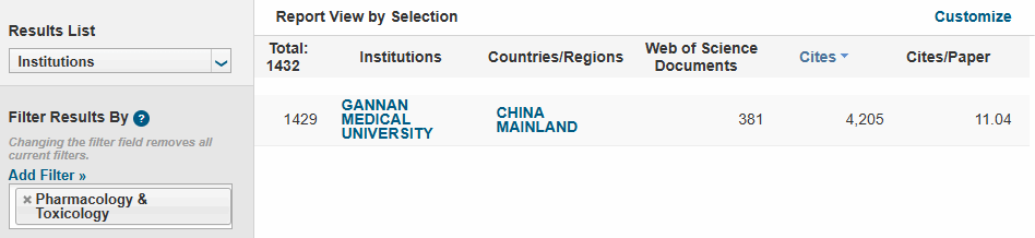据科睿唯安(Clarivate)2026年1月发布的最新一期《基本科学指标数据库》(Essential Science Indicators,简称ESI)统计数据显示,我校药理学与毒理学(Pharmacology & Toxicology)学科首次进入ESI全球排名前1%,实现学科建设历史性突破。本期全球共有1432家机构进入药理学与毒理学学科ESI全球前1%,我校国际排名第1429位,共发表SCI/SSCI论文381篇,总被引频次达4205次,篇均被引11次,高被引论文4篇。这一成绩标志着我校药理学与毒理学学科研究水平和国际学术影响力获得国际权威认可,跻身世界一流学科行列。