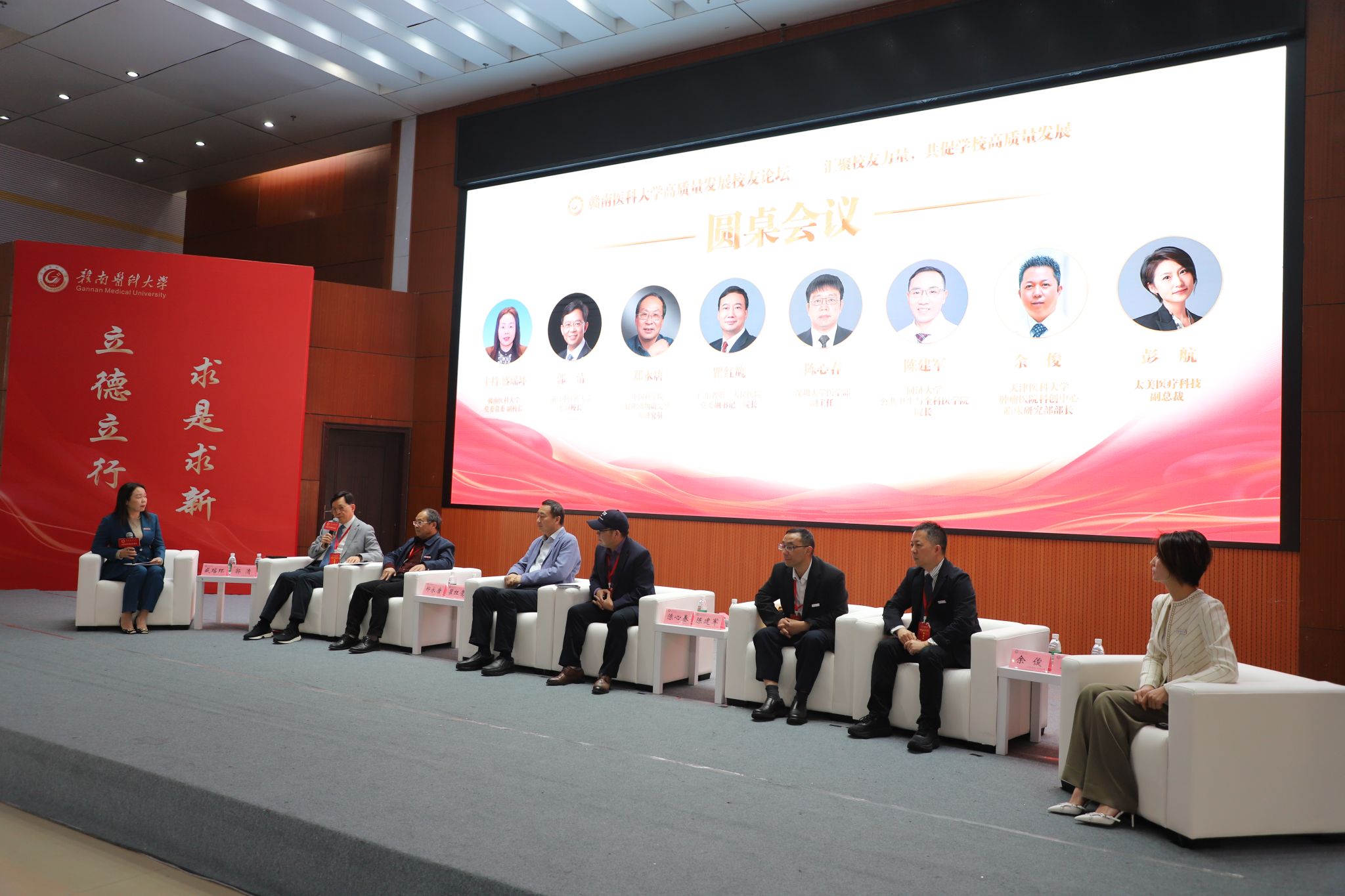 随后召开的圆桌会议上,优秀校友代表——浙江中医药大学原副校长郭清,中科院昆明动物研究所二级研究员郑永唐,广东省第二人民医院党委副书记、院长瞿红鹰、深圳大学医学部副主任陈心春、同济大学公共卫生与全科医学院院长陈建军、天津医科大学肿瘤医院科创中心临床研究部部长余俊、太美医疗科技副总裁彭航,从产教融合、提升科研水平、附属医院发展等多个方面进行了经验分享和交流探讨。盛瑶环主持了圆桌会议。