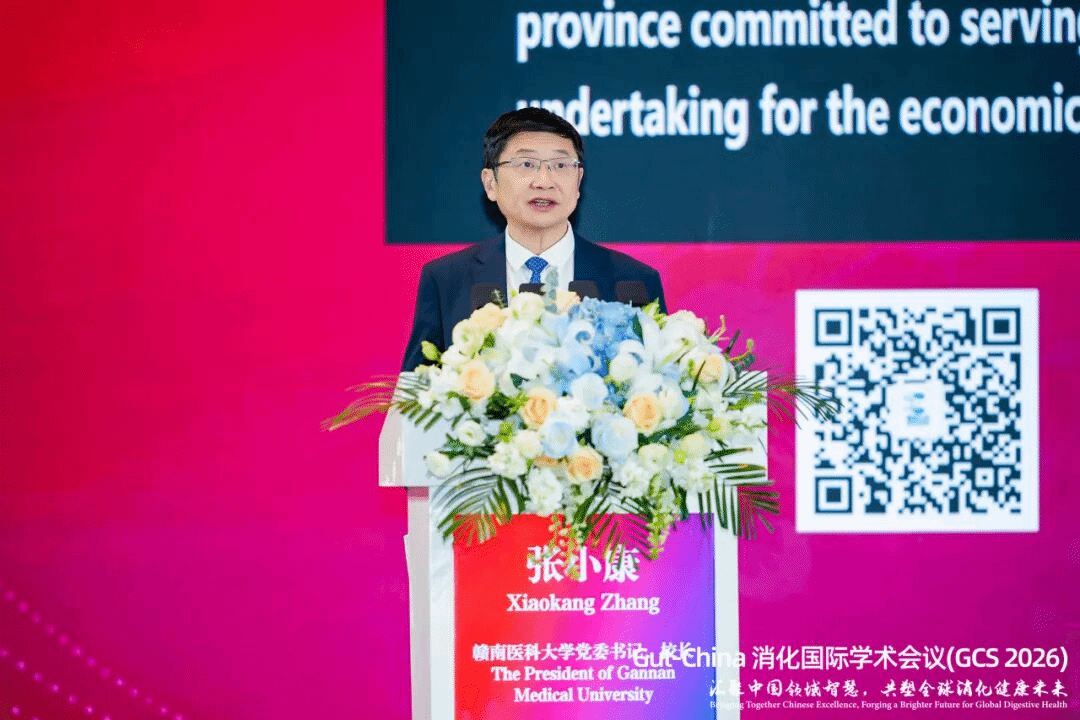 张小康在致辞中代表赣南医科大学对与会嘉宾表示热烈欢迎。他指出,赣南医科大学建校85年来扎根赣南革命老区,在新药靶发现、心脑血管疾病防治、地方病临床研究等领域形成特色优势。近年来,学校合作共建赣南创新与转化医学研究院,并成功获批重大疾病新药靶发现及新药创制全国重点实验室,在消化疾病研究、新药创制、模式动物应用等方面取得长足进步,形成了一批具有国际影响力的原创性科研成果。他表示,本次会议是国际顶尖期刊《Gut》与中国高水平科研平台的强强联合,是顶尖学术资源与临床转化创新的深度碰撞,必将推动“中国智慧”更好地走向世界,让中国学者在国际舞台上发出更强音,期待与各方携手,共同书写国际交流与合作的新篇章。