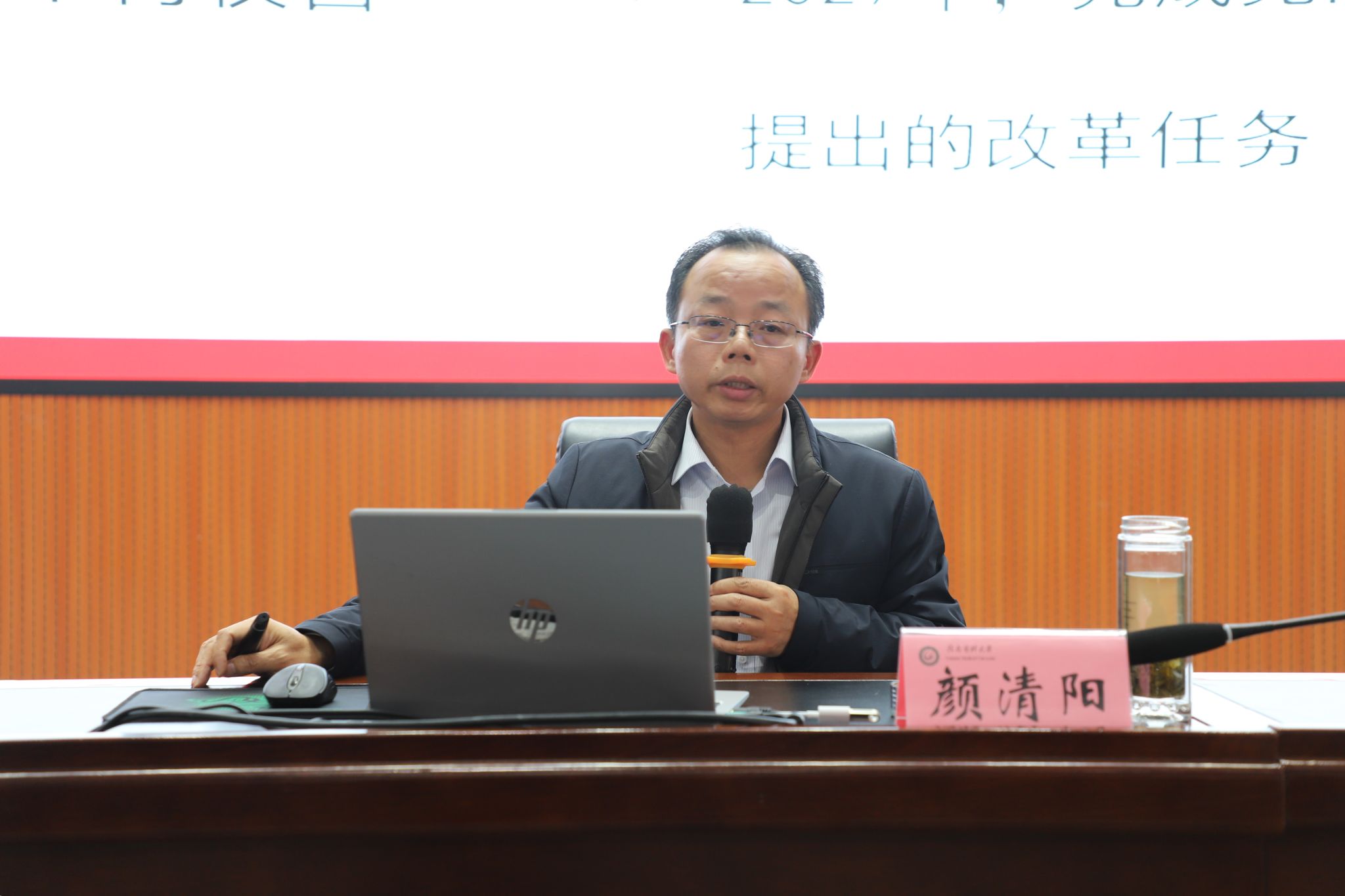 颜清阳以《谱写“十五五”时期中国式现代化新篇章》为题,从“深刻领会‘十五五’时期经济社会发展的重要意义、重大战略任务、根本保证”“深刻领会党中央对国内外形势的基本判断”“深刻领会‘十五五’时期的指导思想、重大原则和主要目标”等方面,系统解读了党的二十届四中全会精神。