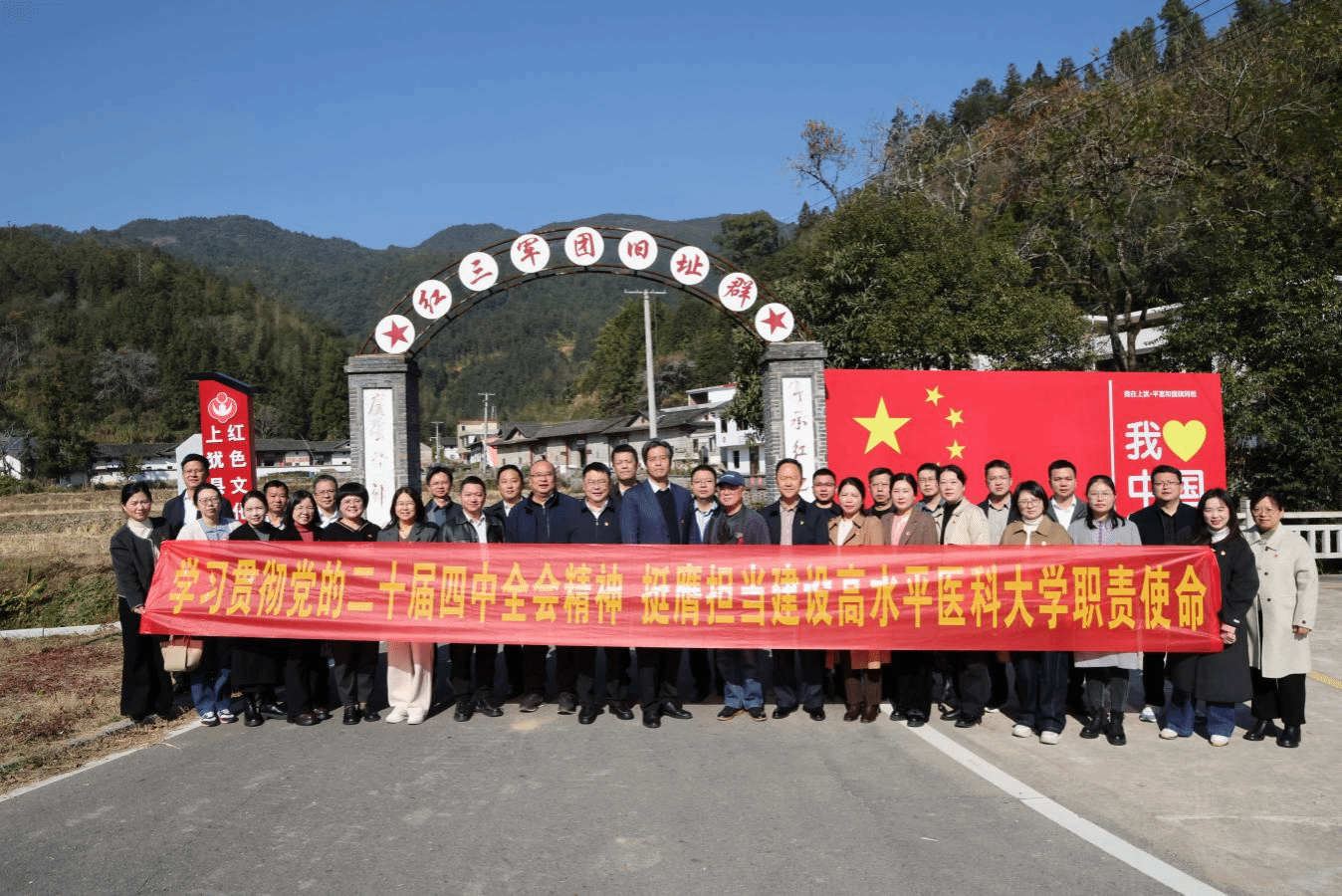 为深入学习贯彻党的二十届四中全会精神,进一步加强与赣南各红色县区的交流合作,推动“红医魂”党建实践基地建设,教育引导党员干部在一线追寻红色足迹、感悟红色历史,在实践中汲取奋进力量,12月19日,机关第三党支部、第十二党支部党员、各下属党委副书记、校团委和苏区卫生与健康中国建设研究中心有关人员赴上犹红三军团旧址群(上寨红三军团后方医院)开展以“传承红医精神,践行使命担当”为主题的党建联学联建暨支部主题党日活动。