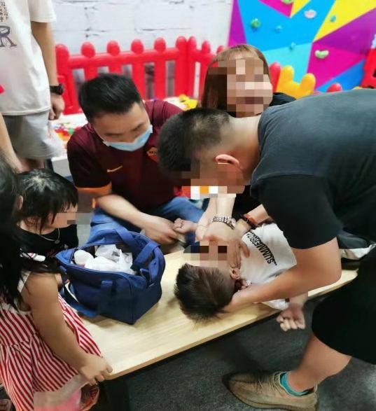 7月25日,适逢周日,梁君铭副主任医师带着女儿、外甥到杏坛宏汇城商场游玩。游玩过程中突闻旁边一片嘈杂声,有人开始呼喊,梁君铭副主任医师发现异常后立即上前,只见一位2岁多的小朋友突发四肢抽搐,双眼上翻,凝视,口吐白沫,意识丧失,家长手足无措,焦急万分。见状后梁君铭副主任医师立即表明其医生身份,积极协助救助,凭借其敏锐的职业观察力和敏感性,初步判断患儿疑似高热惊厥,遂立即让患儿平卧,清理呼吸道,保持呼吸通畅。家长为防止患儿窒息、咬伤,将自己的手指放进患儿口中。梁君铭副主任医师见状又急忙找到替换物换上,防止二次伤害。