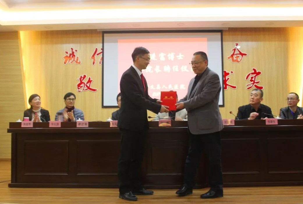 县政协副主席、人民医院院长刘事明为谭进富博士颁发聘任书