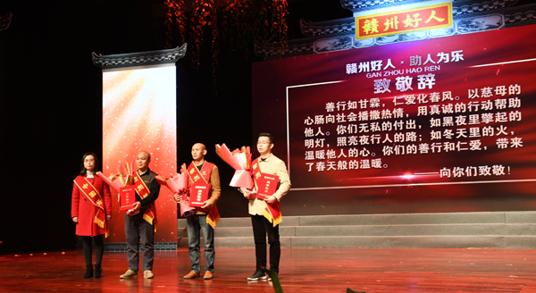 江西网络广播电视台讯 (通讯员钟兆林)1月23日,赣州市道德模范与身边好人现场交流活动暨2018年第四期“赣州好人”发布仪式在上犹县文体中心剧院隆重举行。来自全市各县(市、区)的32人荣登本期“赣州好人”榜。赣县区人民医院肾病内分泌血液科主任、副主任医师杨正生荣登2018年第四期“赣州好人榜”。