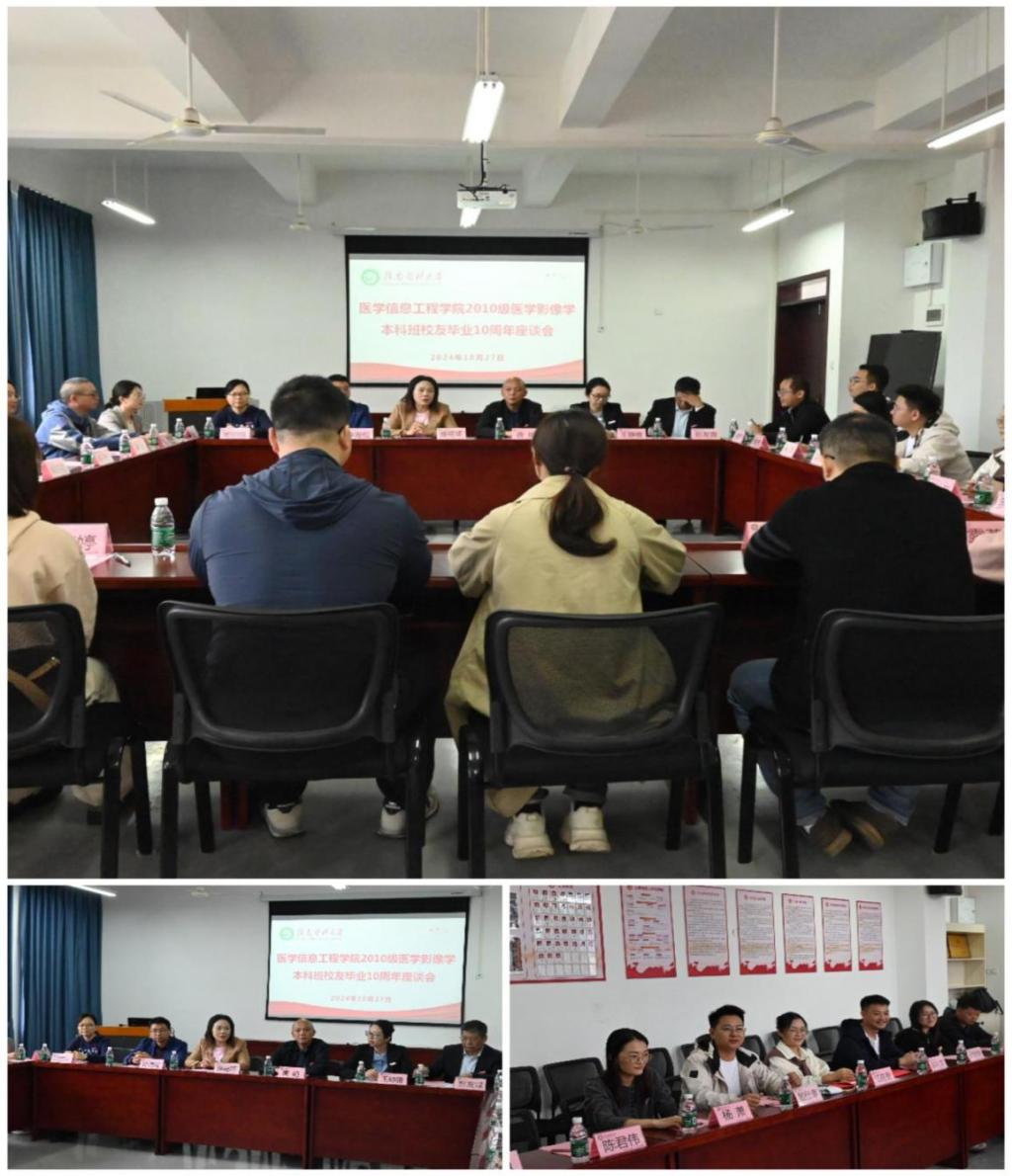 金秋十月,丹桂飘香。10月27日,医学信息工程学院2014届医学影像学本科班校友毕业十周年返校活动在黄金校区举行。学校党委委员、副校长盛瑶环,医学信息工程学院党政领导,辅导员、班主任、教师代表共计40余人参加活动。
