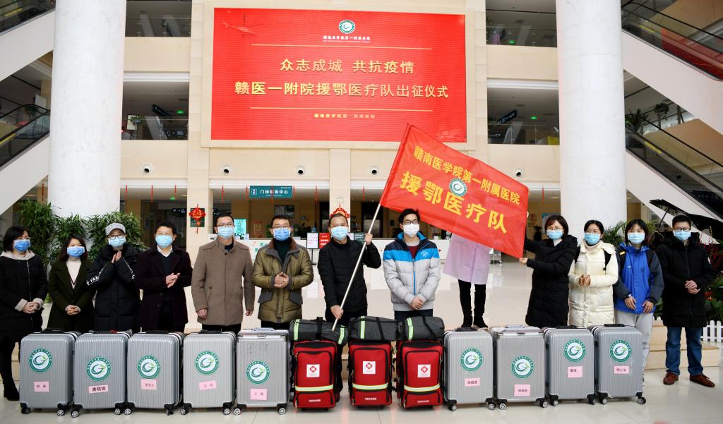2月11日上午,我校一附院第四批支援湖北医疗队12名队员作为江西省对口支援随州市医疗队成员出征,随即奔赴湖北随州进行医疗救援。
