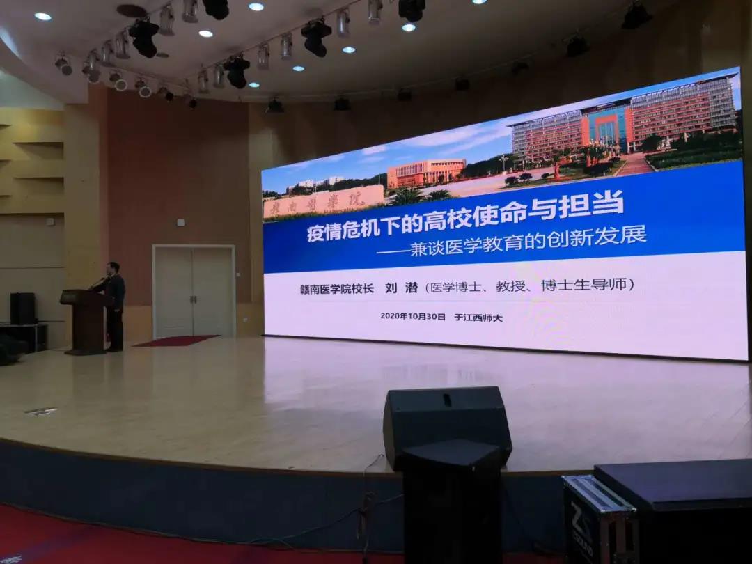 10月30日,受江西师范大学邀请,学校党委副书记、校长刘潜出席了该校80周年校庆活动,并在“新时代、新变革、新教育”为主题的新时代高等教育发展学术论坛上作了题为《疫情危机下的高校使命与担当——兼谈医学教育的创新发展》的专题报告。