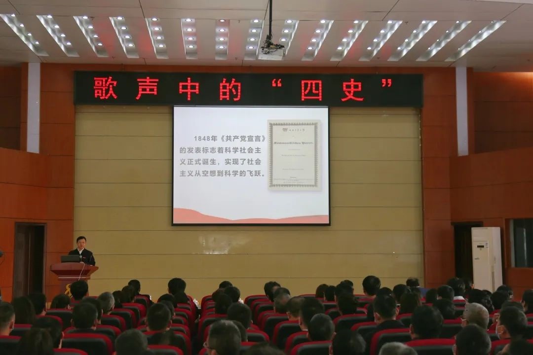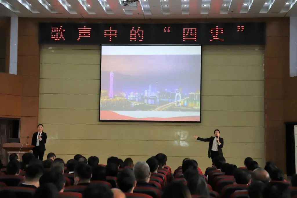 在歌声中学习“四史”,从“四史”中汲取奋进力量。3月11日下午,学校党委书记李恭进和马克思主义学院思政课教师一道,以团体教学的方式,为全体师生上了一堂别开生面的“歌声中的‘四史’”思政课,用歌声回顾党和国家艰难奋斗历程和取得的辉煌成就。在家校领导张小康、曾泽鑫、黄瑞忠、叶军明、彭维杰与现场420余名师生一起聆听。