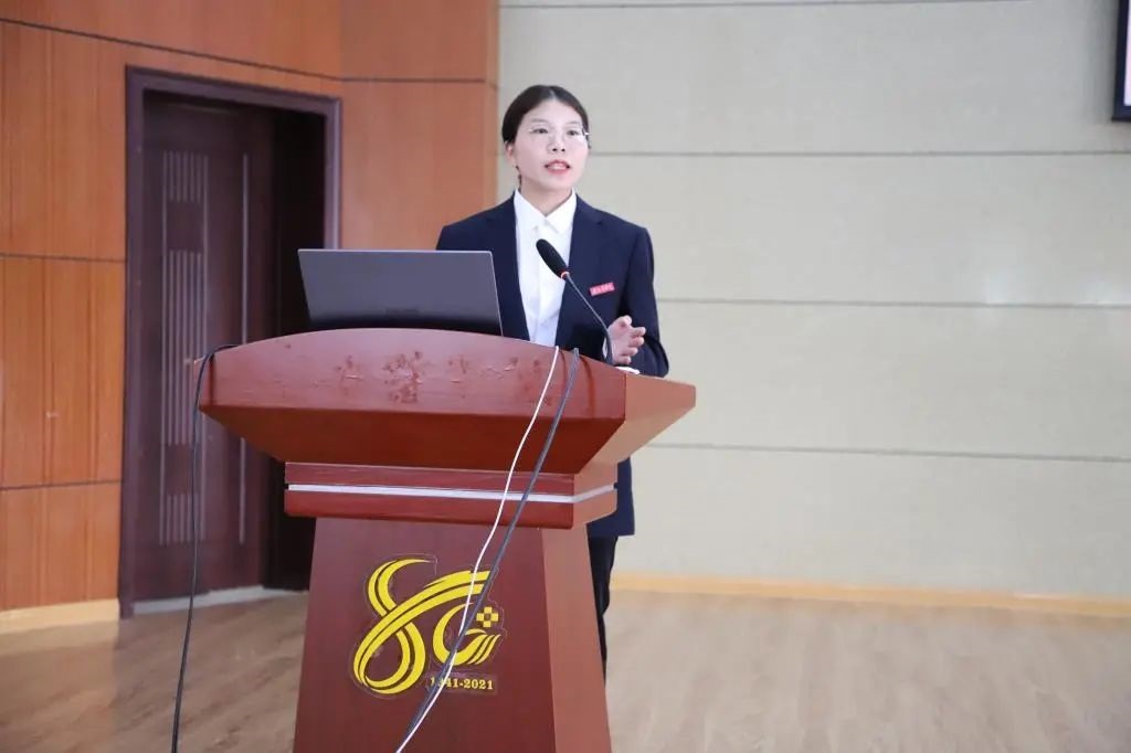 马克思主义学院教师卢婷讲述了井冈山飘下来的歌声——《毛委员和我们在一起》、中央苏区干出来的歌声——《苏区干部好作风》、长征中磨出来的歌声——《过雪山草地》等歌唱中国共产党的早期歌曲背后的动人故事,并现场清唱《苏区干部好作风》。