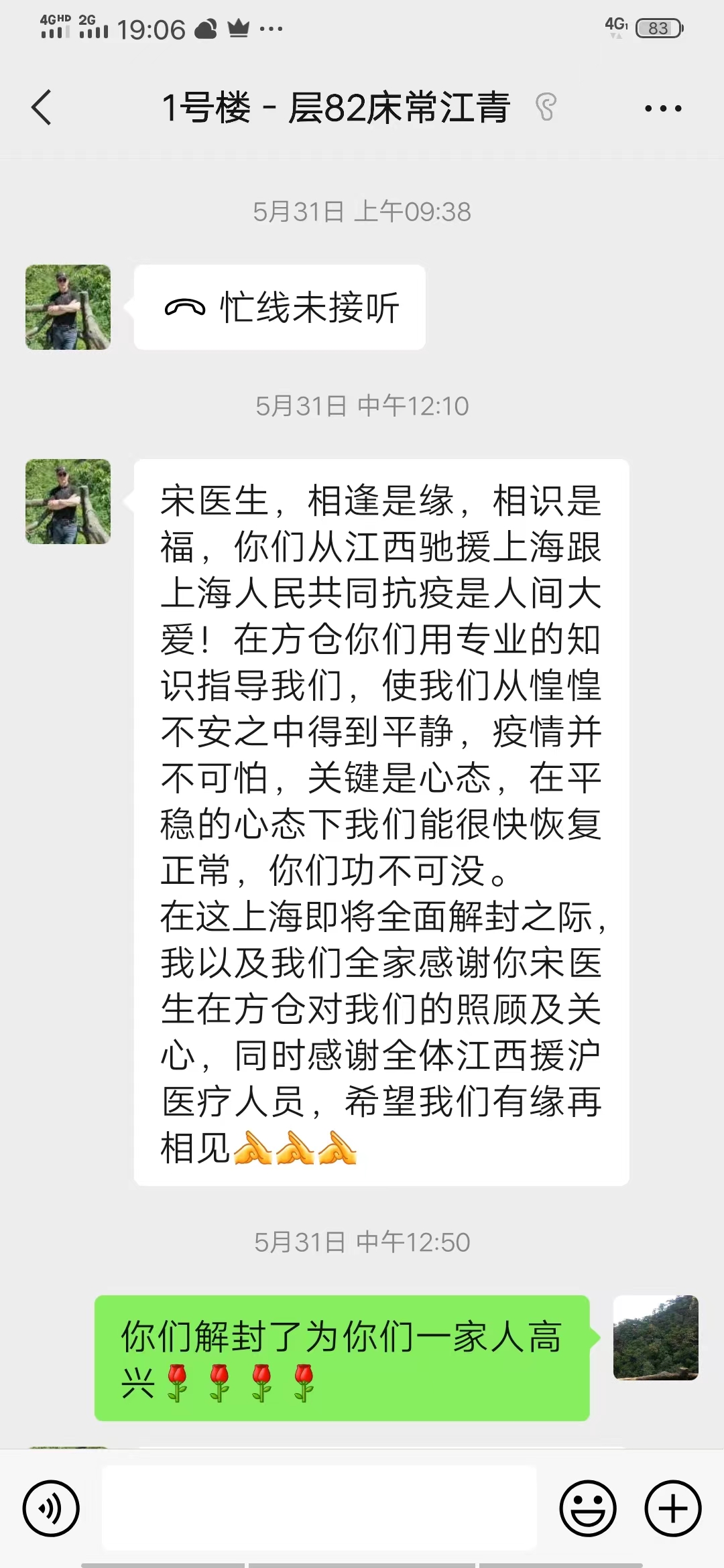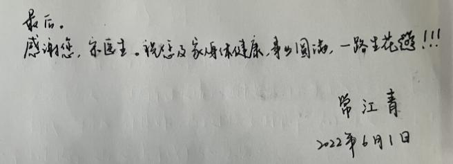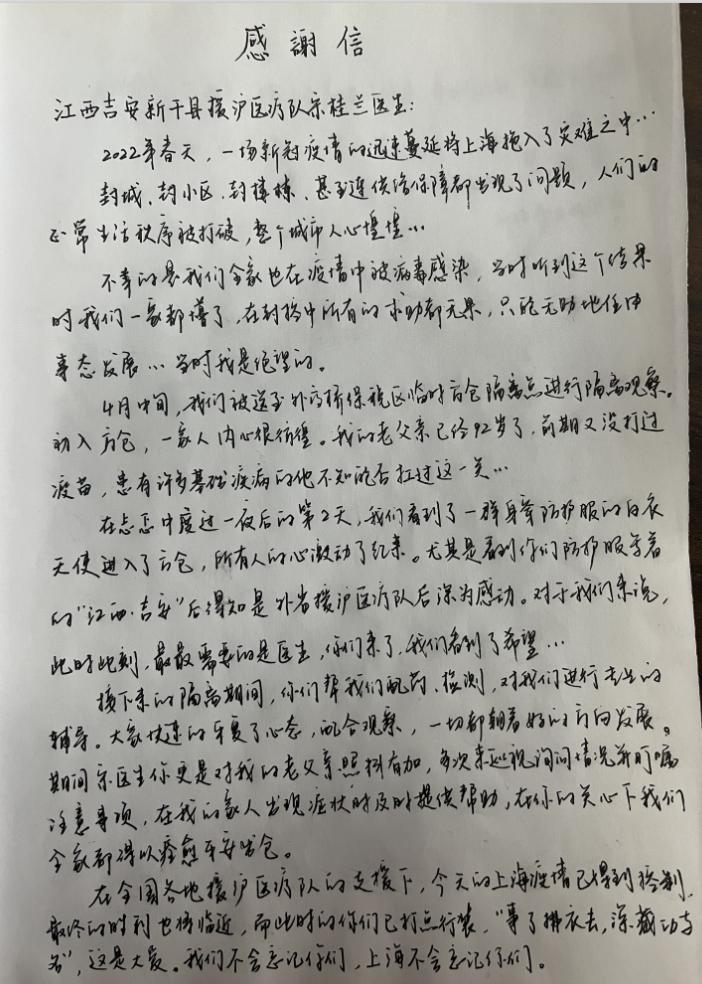 回到吉安,病人发来信息表达感谢并听到了上海解封的消息。能为这次上海抗疫做一点小小的贡献,内心很欣慰,祝福上海,祝福我的病人们。此行经历,对我个人既是一场从未有过的冒险,也是一次提升能力的机会。点点滴滴,化为一张张照片,储存在记忆里。这份记忆里,有“点点萤火,汇成人间星河”;有“万众一心、众志成城”;有“担当使命、人性之光”;更有我们伟大的中国梦!