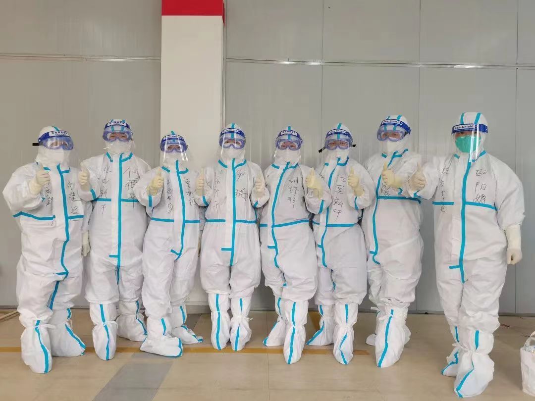 4月13日,我们立即投入到紧张的建舱准备工作中。队长之间一天开几次的视频会,不断地加强进舱、收治及转运患者等流程,院感防控知识一遍又一遍的培训和演习。经过连续几天的院感理论学习、穿脱防护服实操等紧张训练考核合格后,于4月16日,江西省吉安援沪医疗队队员60人分组正式进入爱都路保税方舱。搬运组装物资、准备床单、调试设备,事情纷繁琐碎却井然有序,毫无疏漏。作为第5组组长,我带领组员们熟悉方舱各项流程,强调加强个人防护,考核组员穿脱防护用品的方法,充分做好了进舱前的心理及防护物资准备。