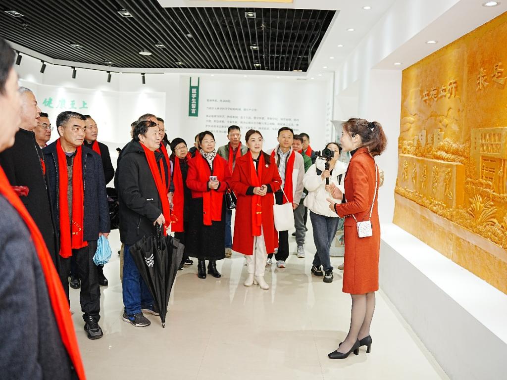 讲解员详细介绍了学校这几十年的发展变化,特别是近年来学校取得的优异成绩及学校高质量发展三年行动计划。