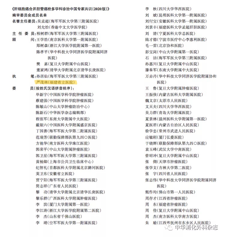 严茂林,我校93级校友,福建省引进人才、博士、福建省立医院肝胆外科主任医师、福建医科大学硕士研究生导师。是国家卫生健康委能力建设和继续教育外科专家委员会胆道外科专业委员会委员、福建省中西医结合学会普通外科分会常委、福建省中西医结合分会普通外科分会肝胆胰外科学组组长、福建省外科学会青年副主任委员;担任《中国普外基础与临床杂志》编委、《中国普通外科杂志》编委、《创伤与急诊电子杂志》通讯编委和《中华消化外科杂志》特邀审稿专家。
