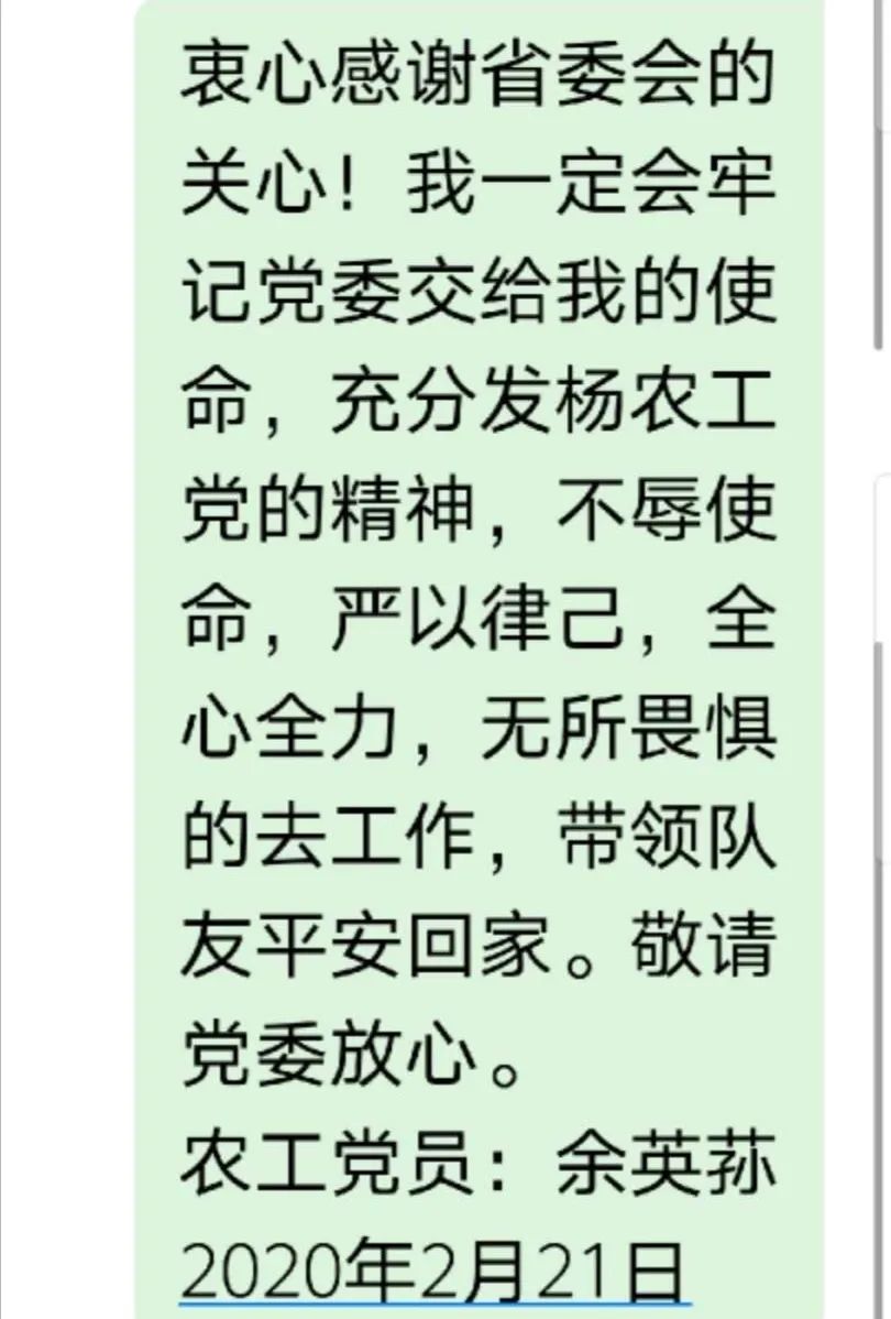 当余英荪收到省主委发来的关怀信息时如下回复: