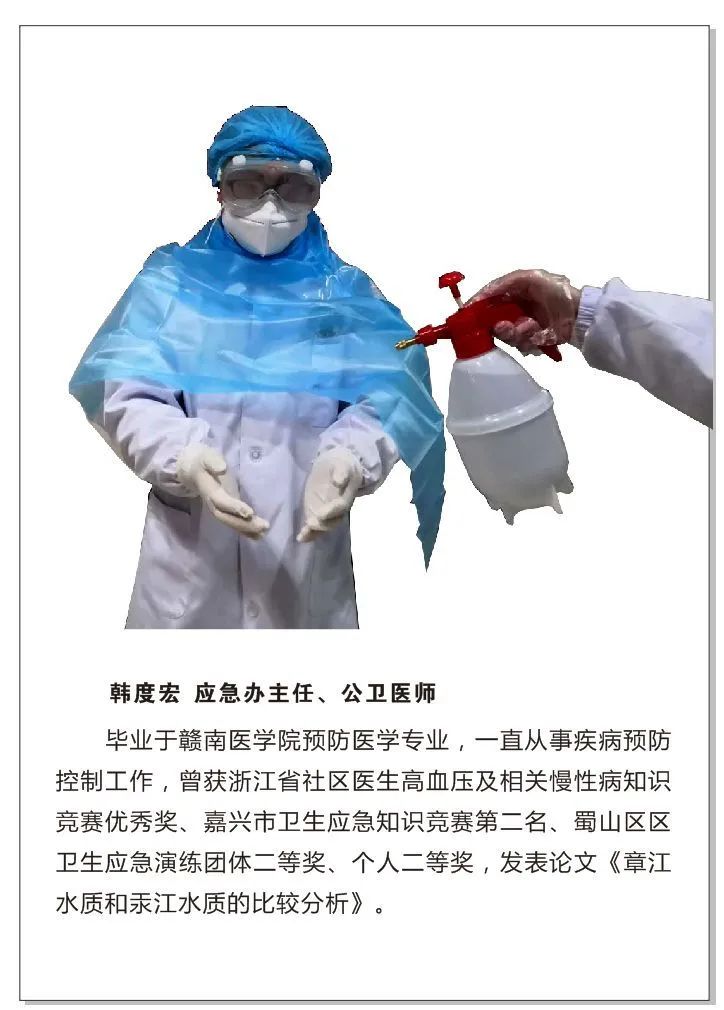 韩度宏作为一名专业的、防疫经验丰富的公卫人员,他既当指挥员,又当战斗员,在社区防控中发挥了重要作用。由于疫情的不断发展,从大年初三,他便吃住在办公室,二十多天始终没来得及回家一趟,累了就在办公室稍做休息,饿了就泡上一盒方便面,长时间连续奋战在阻击疫情的第一线。他孩子才一岁半,父亲年事已高,去年因冠心病安装了支架也需要照顾。虽然家庭负担较重,但他说“疫情就是命令,防控就是责任。穿上白大褂,就要履行自己的使命。”