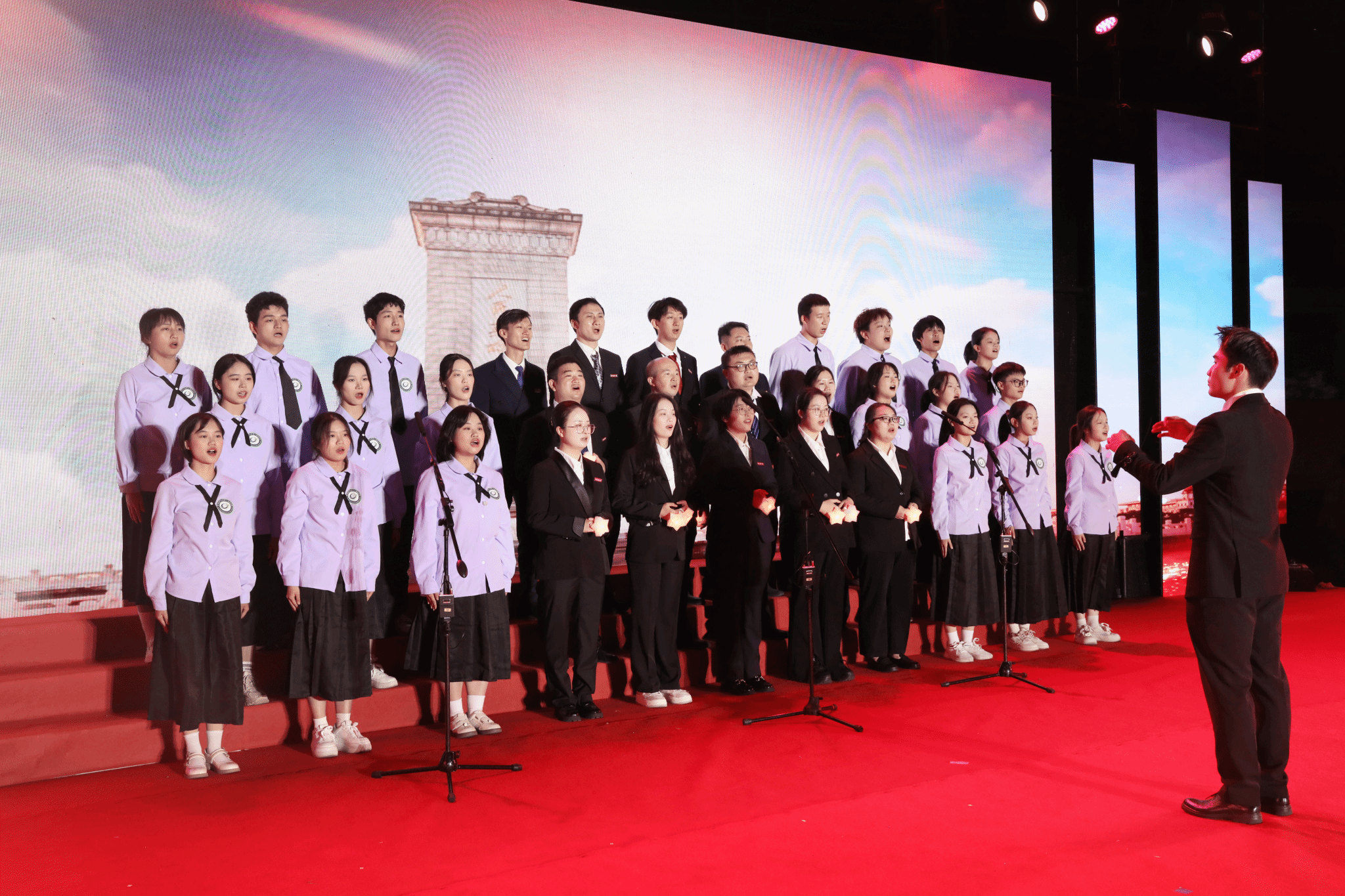 终场环节,2025级新生代表、班主任代表与辅导员共同合唱《明天会更好》,温馨的旋律为本次见面会画上圆满句号。