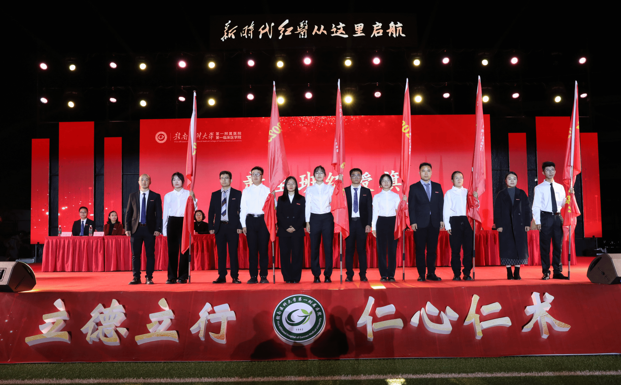 夜幕璀璨,青春集结。11月30日晚,龙南校区田径场灯火通明、暖意融融,第一临床医学院(第一附属医院)“新时代红医从这里启航”2025级新生见面会在此举行。