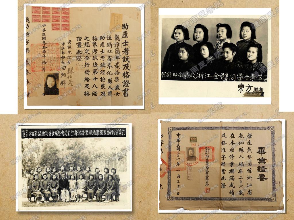 戴雅兰(1923-2019),1944年考入江西省立赣县高级助产职业学校,在校期间积极参与学校建设管理,曾任学生膳食会委员长、自治会文书股长。1947年1月毕业后在上饶省立医院产科工作,1949年后在杭州铁路医院产科工作,1953年至1954年在上海铁路局组织的医训班学习,回杭后创办了杭州铁路医院急诊科并担任医师,长期在浙赣铁路沿线卫生所工作,1973年被调回杭州铁路医院任小儿科医师,直到1978年退休。戴雅兰校友生前长期关心母校建设发展,曾在学校建校70周年前夕捐赠多幅历史照片等珍贵资料。